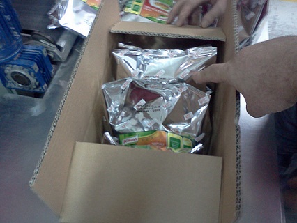konveyör üzerinden gelen ürünler sıraya dizilir ve istenilen kombinasyonda koli içerisine yerleştirilir . koli asortmenti tamamlanınca koli kapanır , bantlanır ve koli üstüne etiket yazılıp yapıştırılarak çıkışı yapılır. |